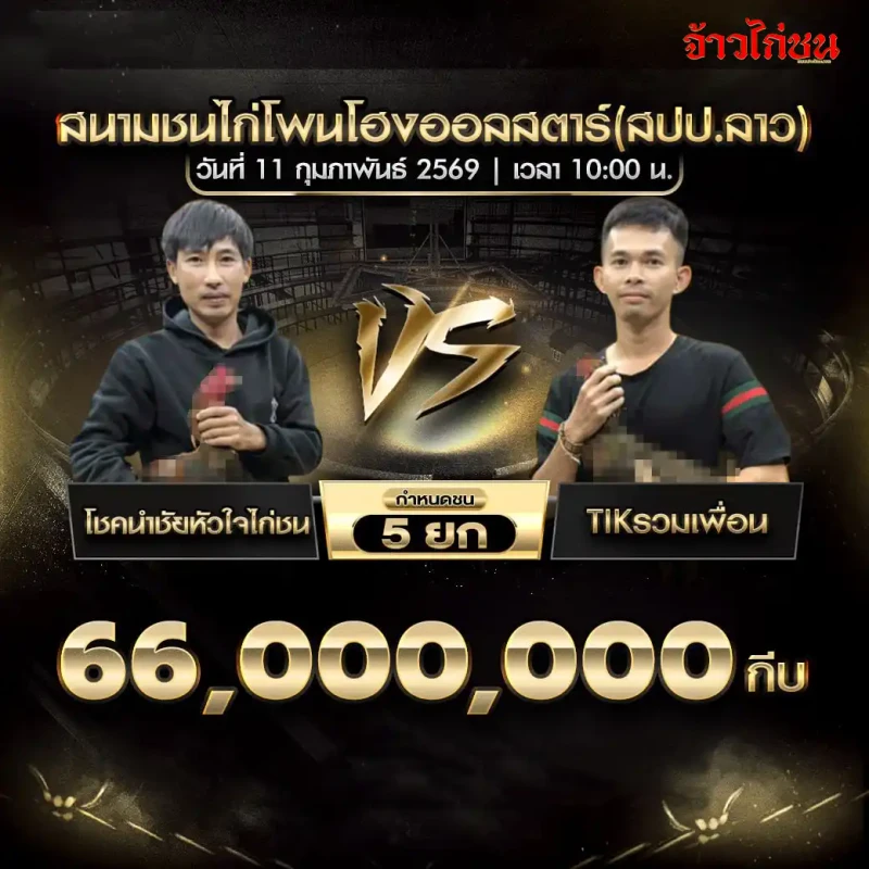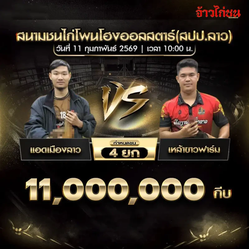 โปรแกรมไก่ชน วันนี้ 11 กุมภาพันธ์ 2569 | สนามชนไก่โพนโฮงออลสตาร์ (สปป.ลาว)