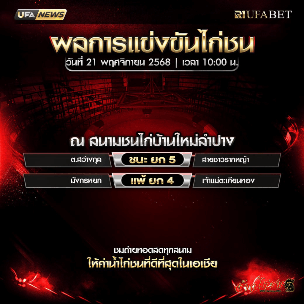 UFA NEWS · ผลไก่ชนวันนี้ · สนามบึงทับแต้ ผลไก่ชนวันนี้ […]