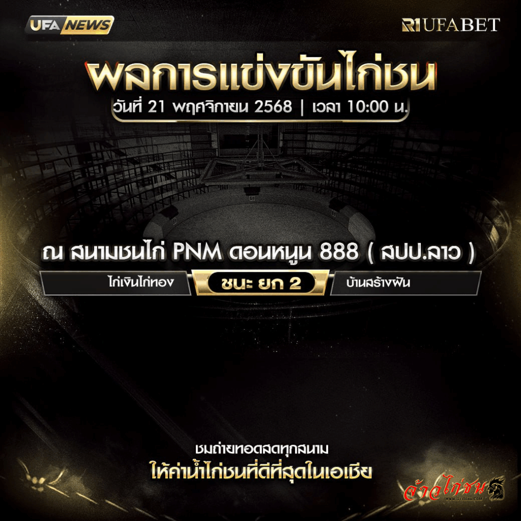 ผลการแข่งขันไก่ชน สนาม PNM ดอนหนูน 888 (สปป.ลาว) – ไก่เงินไก่ทอง ชนะยก 2